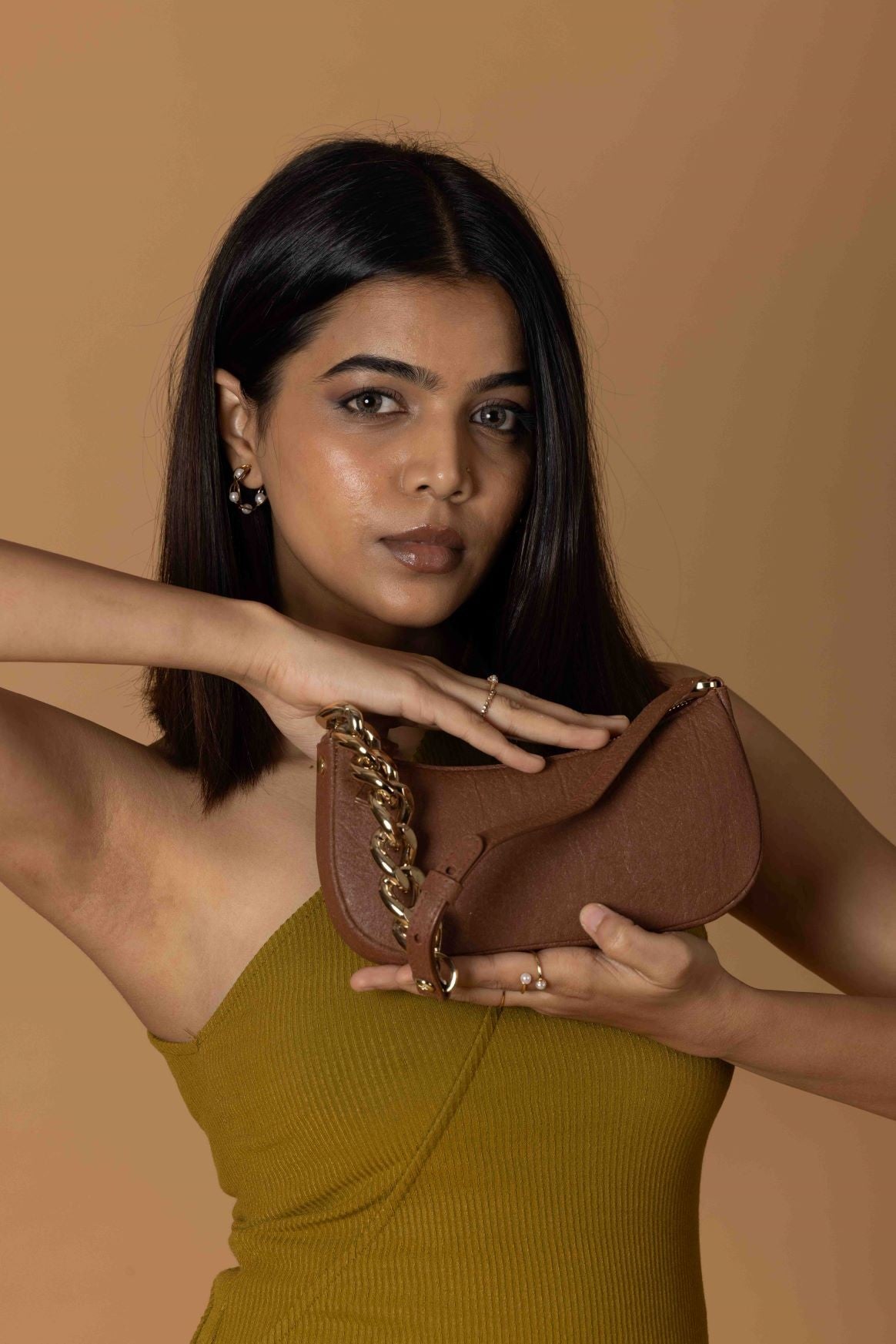 Kenti means kettle in Tamil. This mini bag is inspired by the kettle bell in the shape of its ergonomic handle. With its fresh, fun and fashionable look, Kenti can be your go-to accessory. This bag works both as a cross-body and a hand-held bag. Kenti is 100% vegan. The surface of the bag is made using leather derived from cactus, with recyclable aluminium-based D-rings which support the straps. The inner lining of the bag is made using sustainably grown organic cotton.