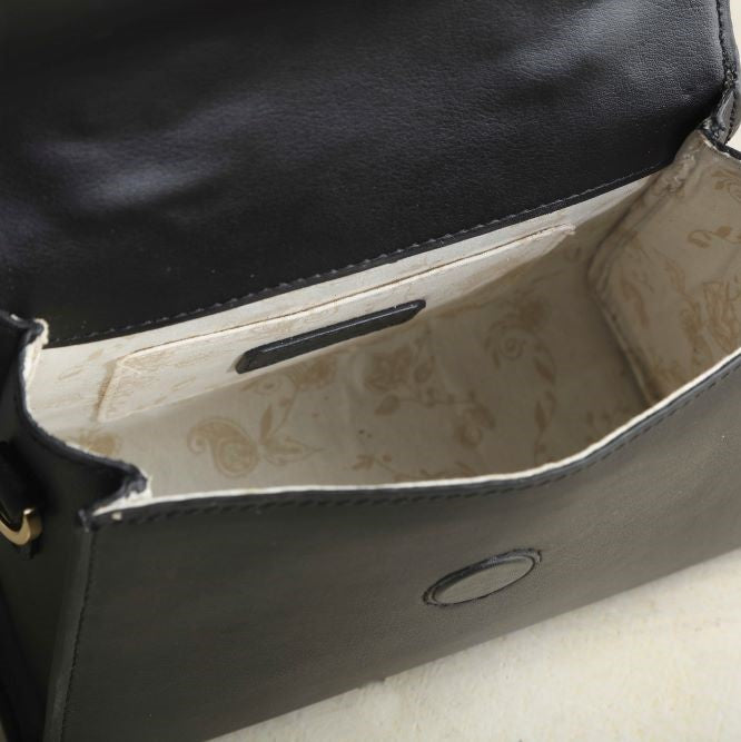 Aluminium is the core component used to make the D-rings on either side of the strap. The bag also has a magnetic closure. The intricate design of the inner-lining is designed by a South Indian mehendi (henna) artist, adding a touch of our vibrant Indian culture to Kenti.