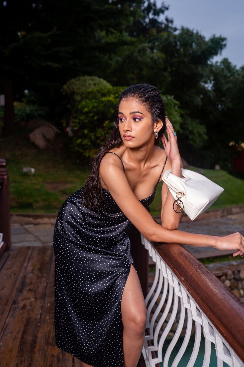 Punya can be carried like a clutch, by the handle, or like a cross-body bag.